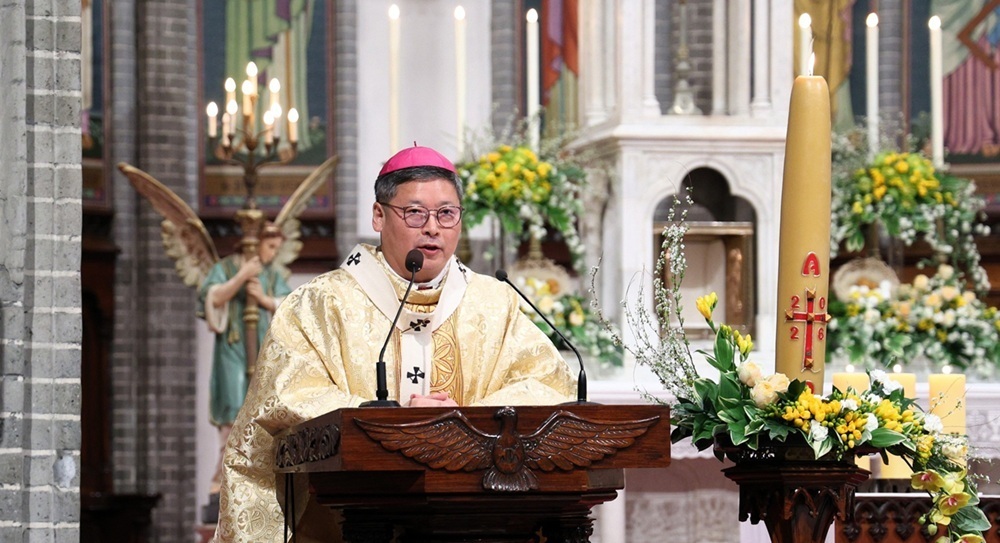 서울대교구장 정순택 대주교가 4일 파스카 성야 미사에서 강론을 하고 있다. 서울대교구 제공